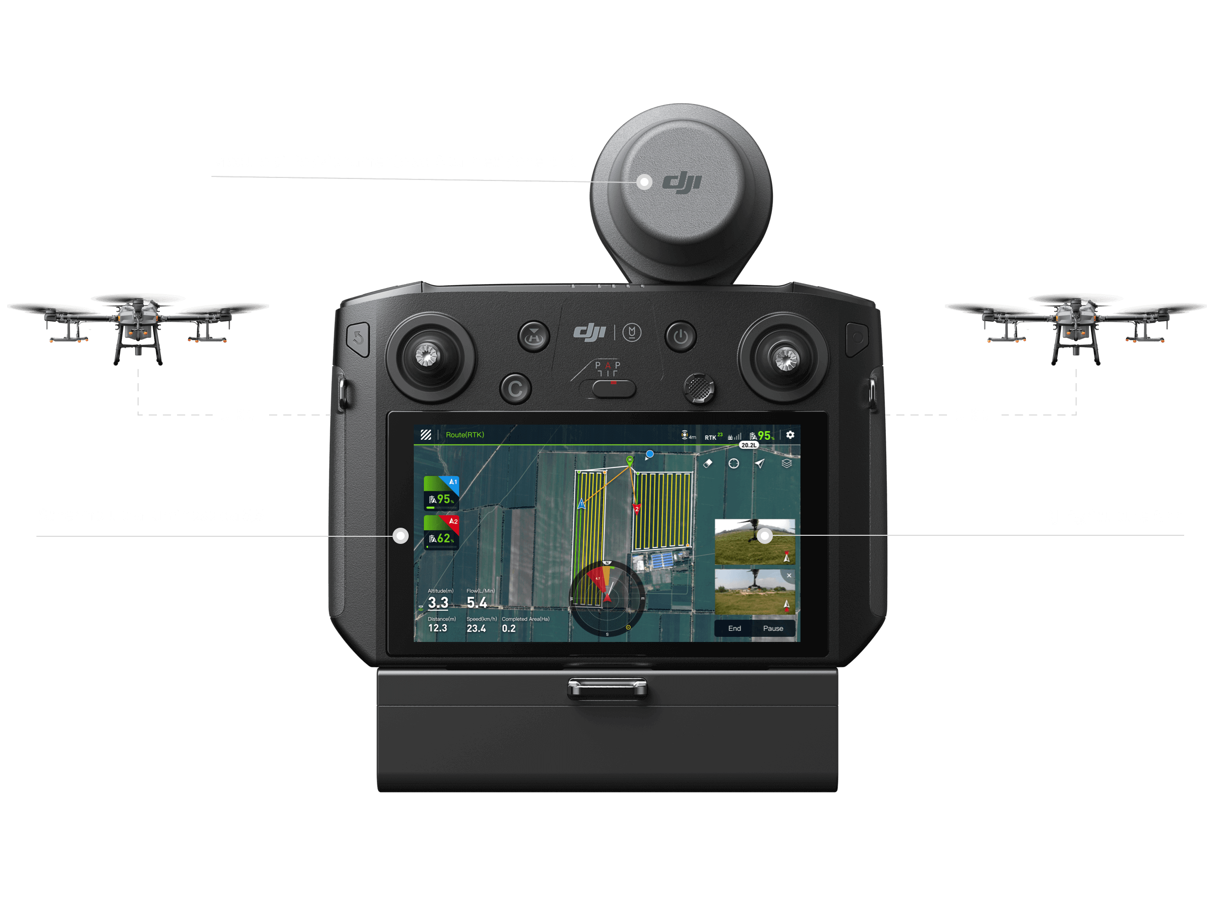 Un radiocomando è in grado di gestire contemporaneamente diversi droni, per una maggiore produttività.