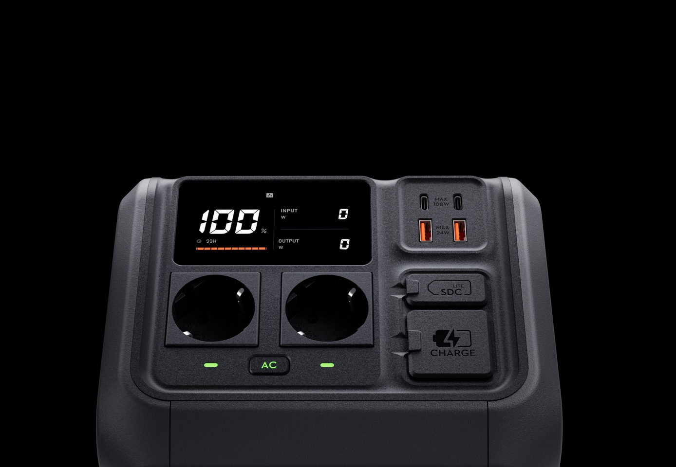 Collegato alla rete elettrica, DJI Power 500 supporta la ricarica a 540 W e 270 W e richiede solo 70 minuti per caricare la batteria al 100%.