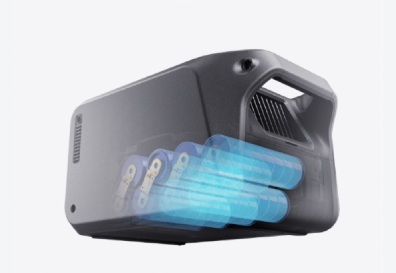 DJI Power 500, leggero e portatile, ha una capacità della batteria di 512 Wh, in grado di fornire una potenza in uscita massima di 1000 W.